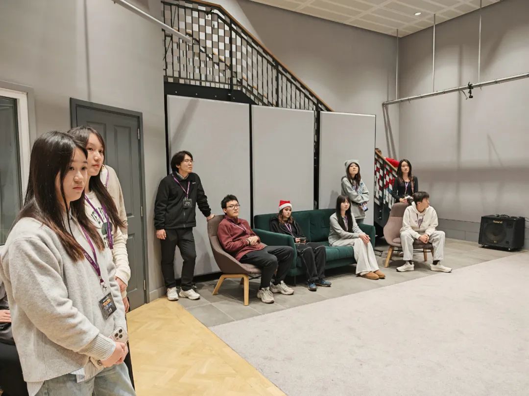 Inside, students were intrigued by the building’s acoustic intelligence. Beyond advanced broadcasting equipment, specially designed floors revealed a “sound control ecosystem”: thick carpets in interview studios absorbed mid-to-high-frequency noise for clarity, while dense wooden floors in the music rooms preserved natural warmth and resonance. The most impressive was the “Quiet Room,” featuring a box-in-box structure isolated from the main building to block external vibrations—a space used for precise audio editing and as a space of respite for neuro divergent individuals.
