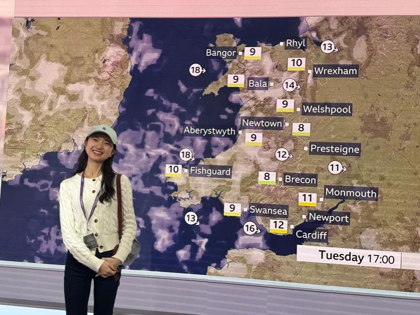 A “History Wall” in the atrium displayed archives and vintage equipment dating back to BBC’s founding in 1922, narrating BBC Wales’ enduring journalistic commitment since 1923. The visit peaked with immersive experiences: students sat at news anchor’s desk for mock live broadcasts and stood before green screens to present weather forecasts, gaining firsthand insight into the teamwork behind the screen.